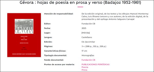 PRESENTACION DE GÉVORA. ESTUDIO DE UNA REVISTA POÉTICA DE EXTREMADURA DE ANTONIO SALGUERO CARVAJAL